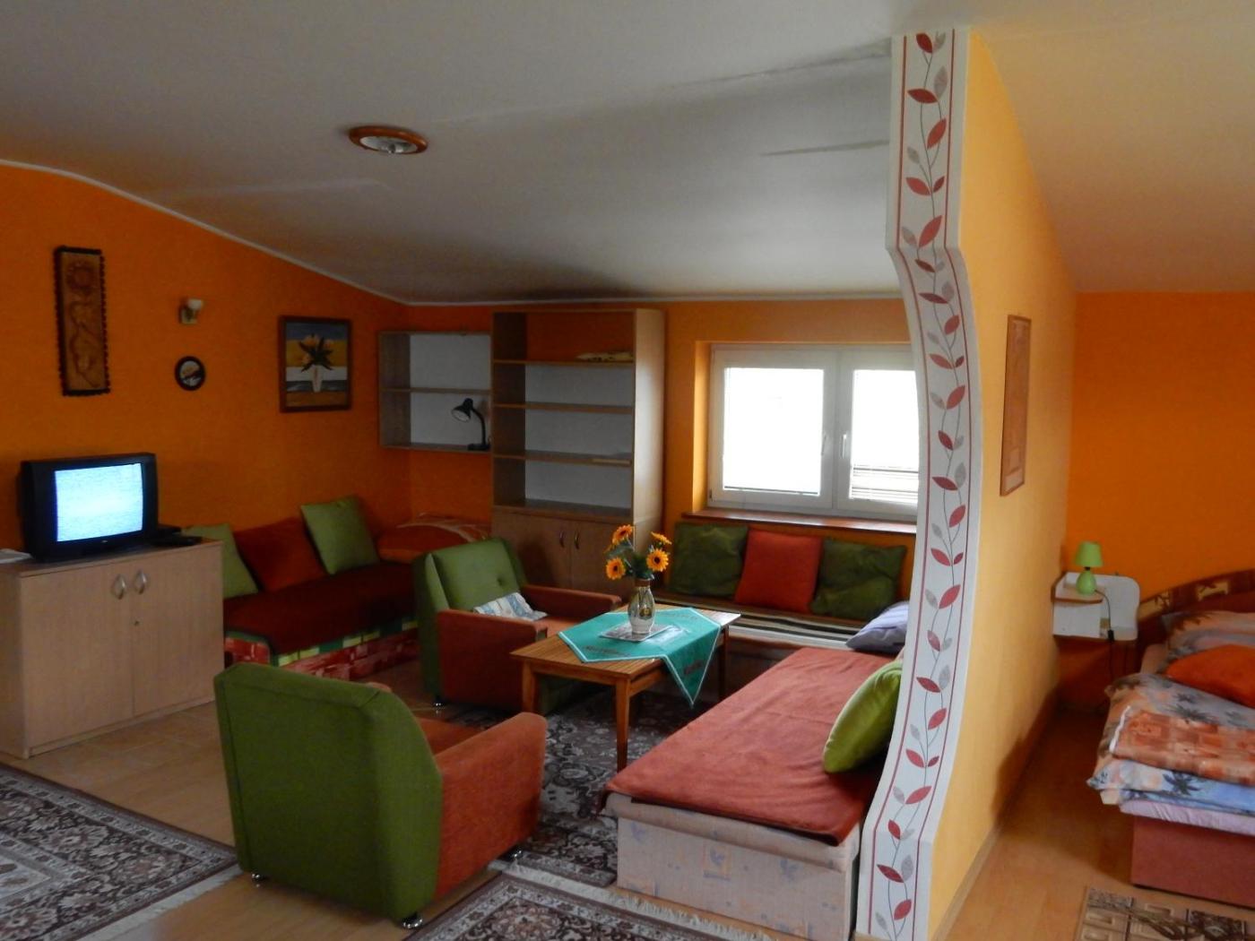 One-Bedroom Apartment. This apartment is comprised of 1 living room, 1 separate bedroom and 1 bathroom with a shower and free toiletries. Guests will find a stovetop, a microwave and a tea and coffee maker in the kitchenette. The apartment also has a barbecue. The apartment offers soundproof walls, parquet floors, a carpeted floor, heating, as well as a TV. The unit offers 3 beds. ;