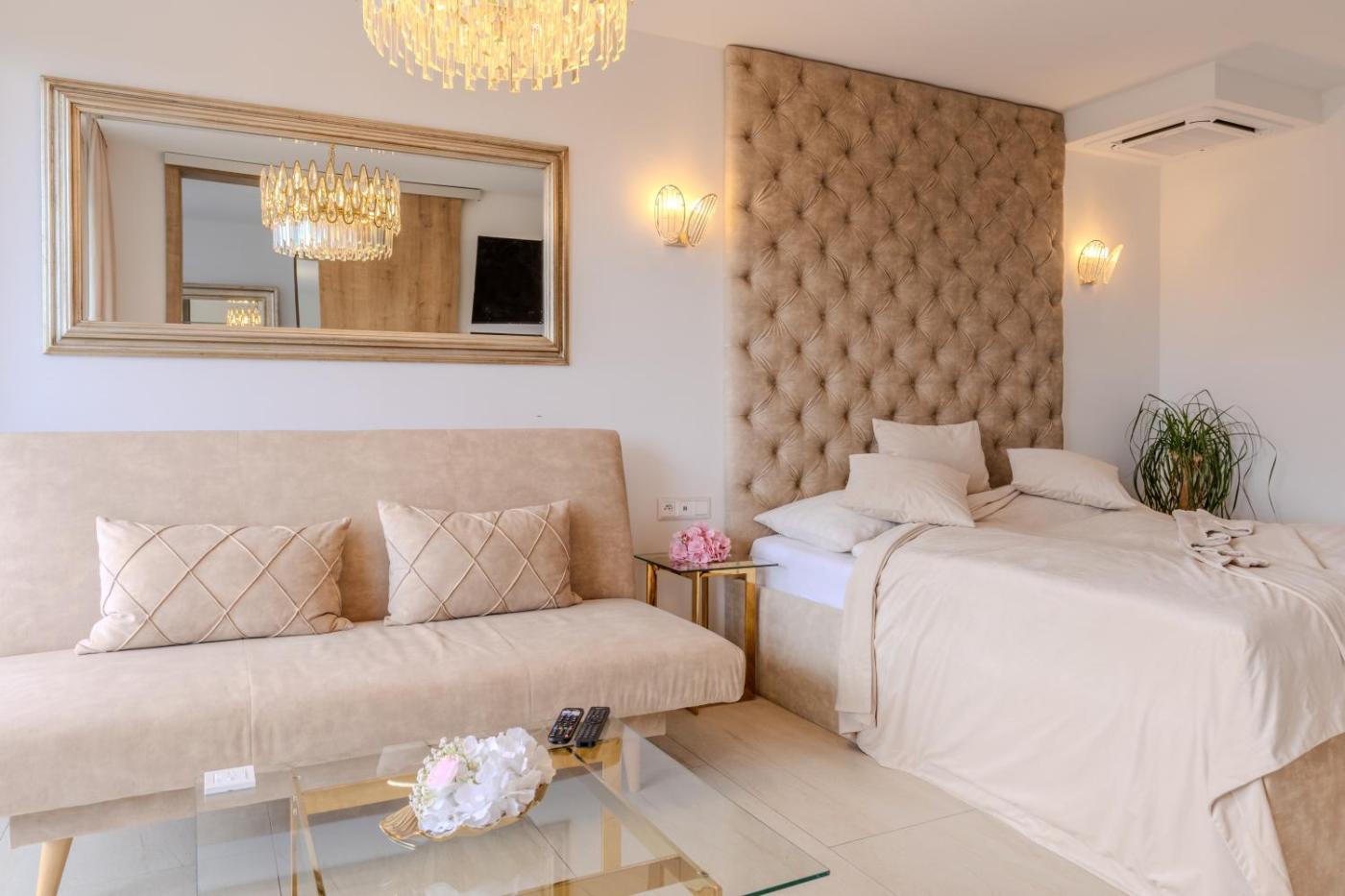 Apartment. This apartments standout features are the private pool and hot tub. Boasting a private entrance, this air-conditioned apartment includes 1 living room, 1 separate bedroom and 1 bathroom with a shower and a hairdryer. Guests can make meals in the kitchen that is fitted with a stovetop, a refrigerator, a dishwasher and kitchenware. The spacious apartment offers a washing machine, soundproof walls, a minibar as well as a terrace with lake views. The unit has 2 beds.