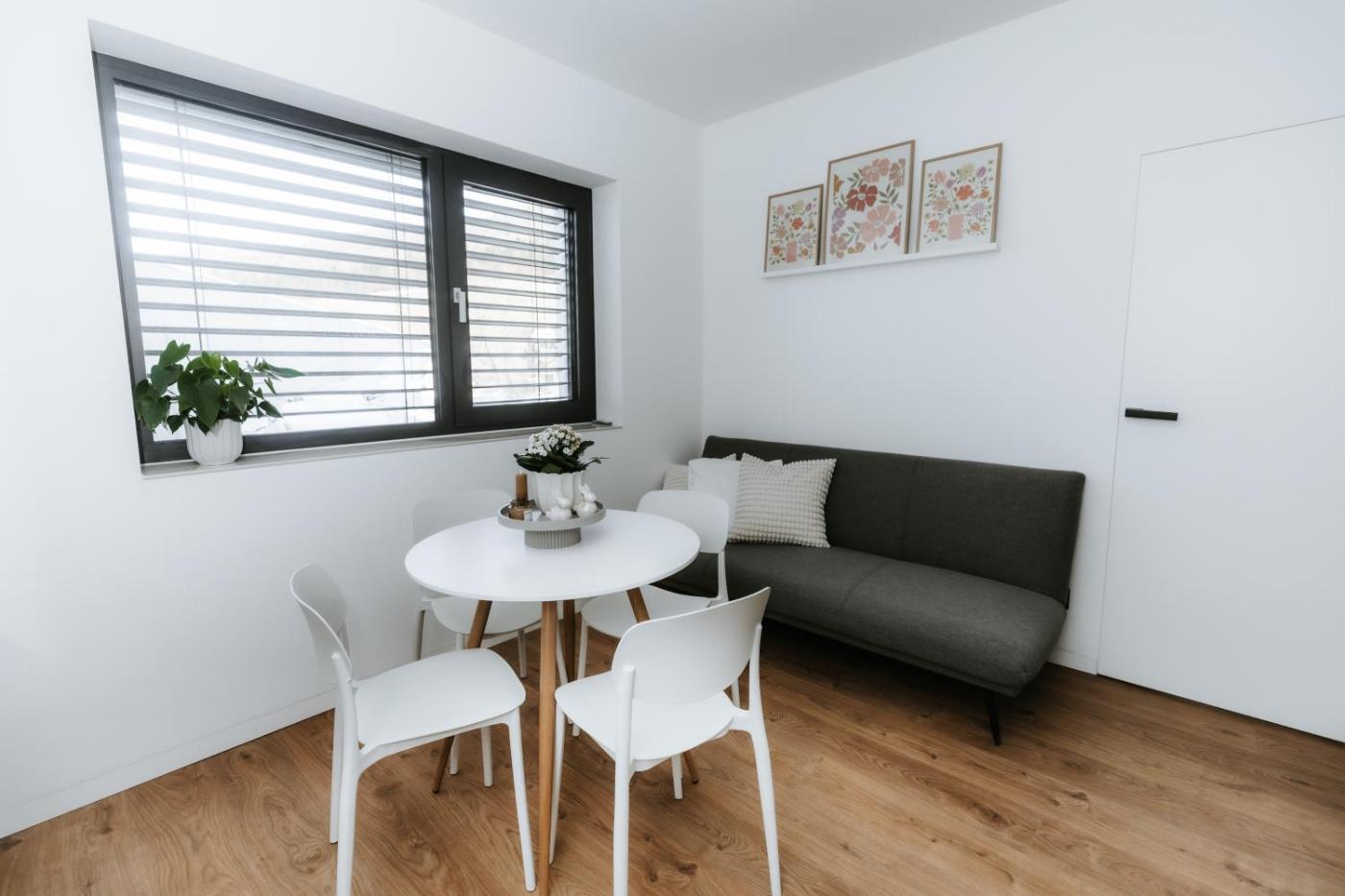 One-Bedroom Apartment. Featuring a private entrance, this apartment consists of 1 living room, 1 separate bedroom and 1 bathroom with a shower and a hairdryer. In the kitchen, guests will find a stovetop, a refrigerator, a dishwasher and kitchenware. This apartment features a tea and coffee maker, a seating area, flat-screen TV with streaming services, as well as winechampagne for guests. The unit offers 2 beds.