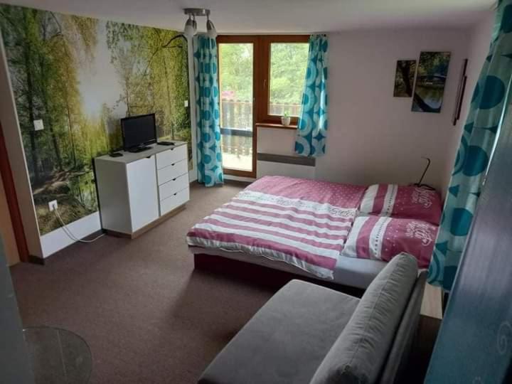 Located in Vyhne in the Banskobystrický kraj region, Slnečná Chatka Vyhne has a balcony. This property offers access to a terrace and free private parking. The property is non-smoking and is situated 37 km from Kremnica Town Castle.